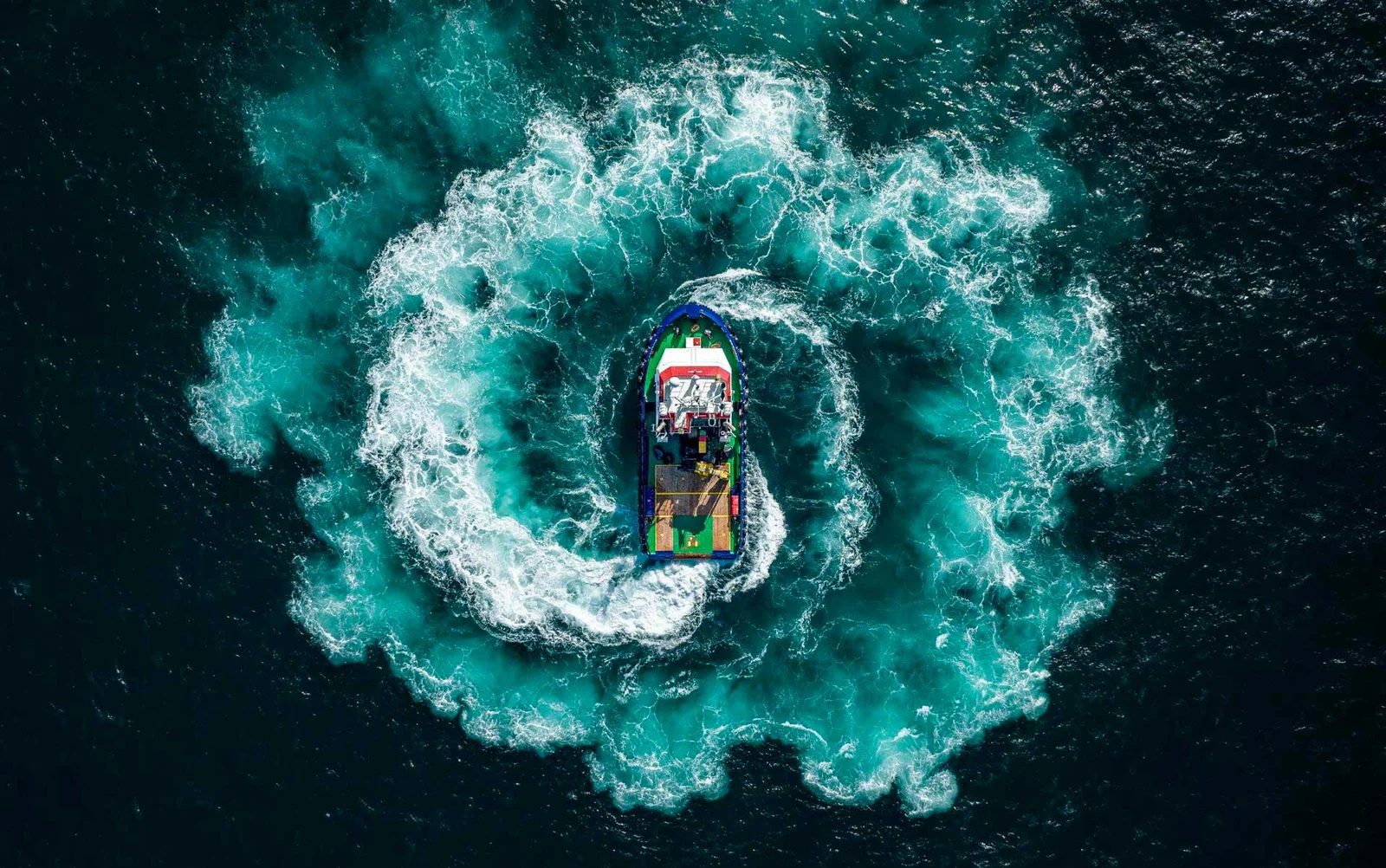 The photographer of this image, Marc Le Cornu set out to capture the arrival of ‘Duchess’, a brand new tug boat into service on the island of Jersey. With main intentions of conveying senses of power, motion and beauty altogether, he operated a drone from a pilot boat not far from it, and contacted the captain in performing an ocean ‘donut’ for the sake of the image. The results were fantastic, resembling a flower with the Duchess perfectly positioned in the center of the image.
