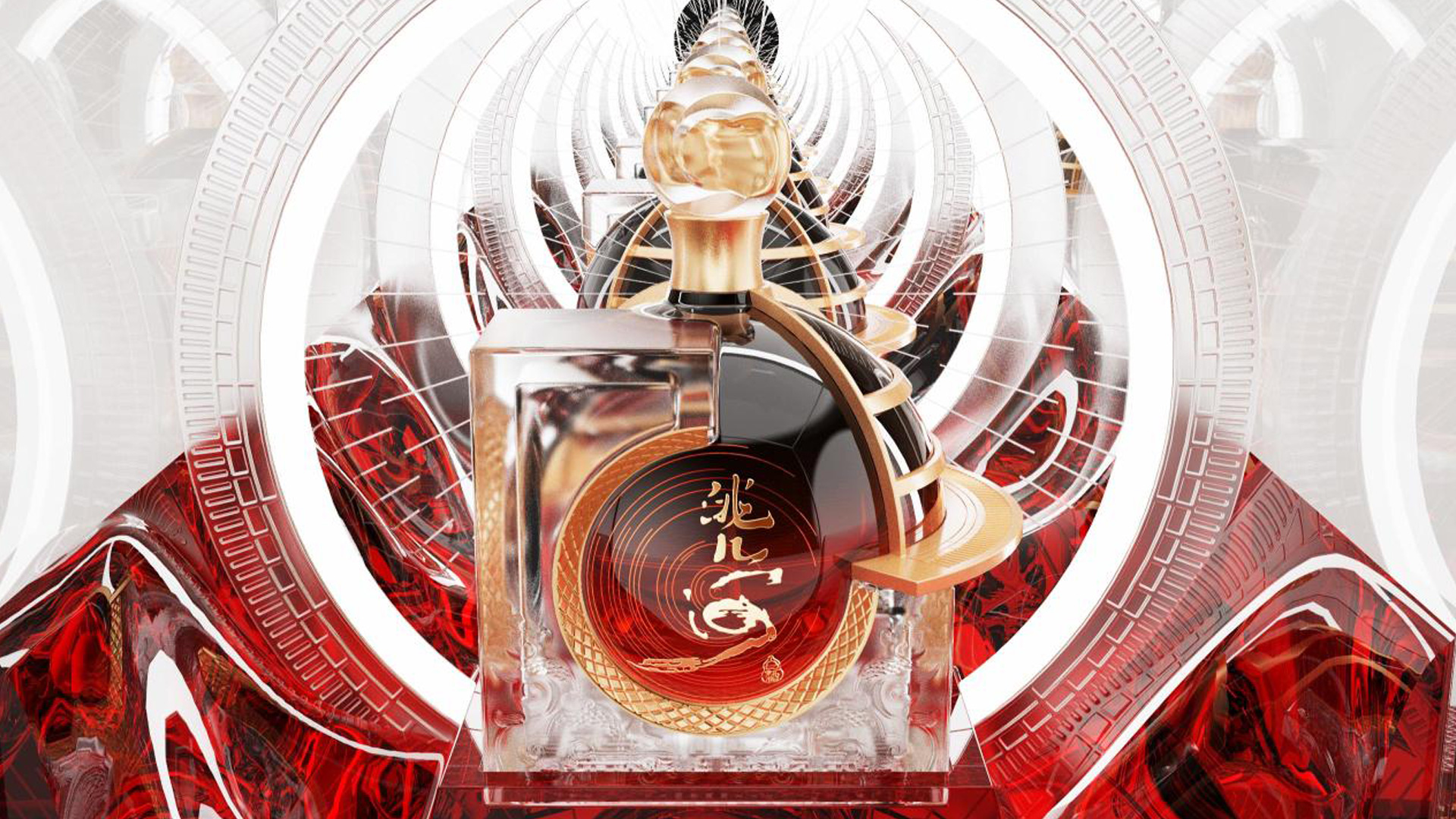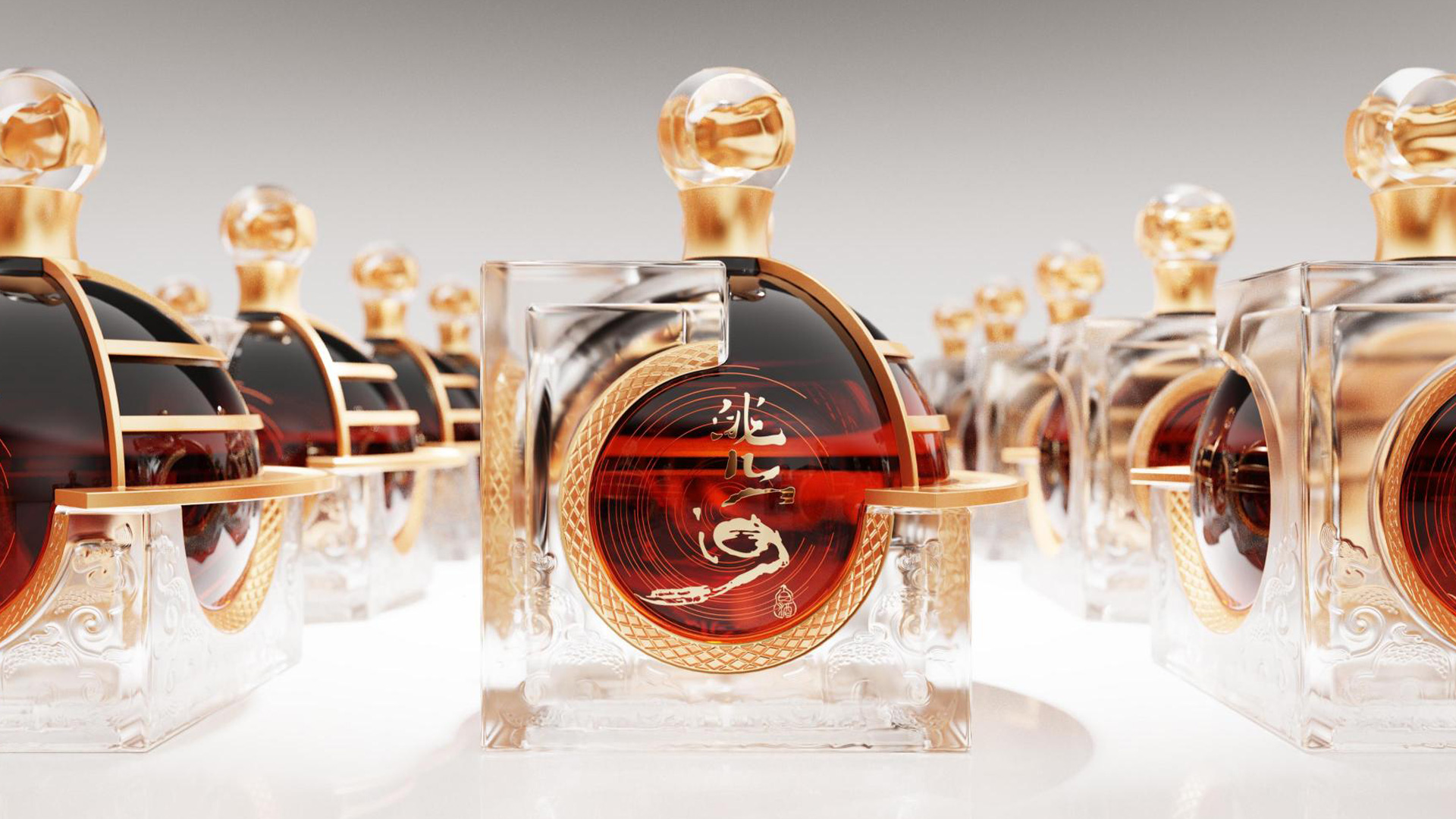 The four sides of the bottle base are adorned with dragon motifs inspired by the Armillary Sphere, where dragons appear to cradle the celestial form as a symbol of continuity and unbroken heritage. This sense of timeless flow carries upward to the bottle cap, where a golden river passes through a subtle gate of time, creating a visual moment that feels both ceremonial and reflective, as though the design itself is pausing to acknowledge the passage of history and the stories it continues to hold.
