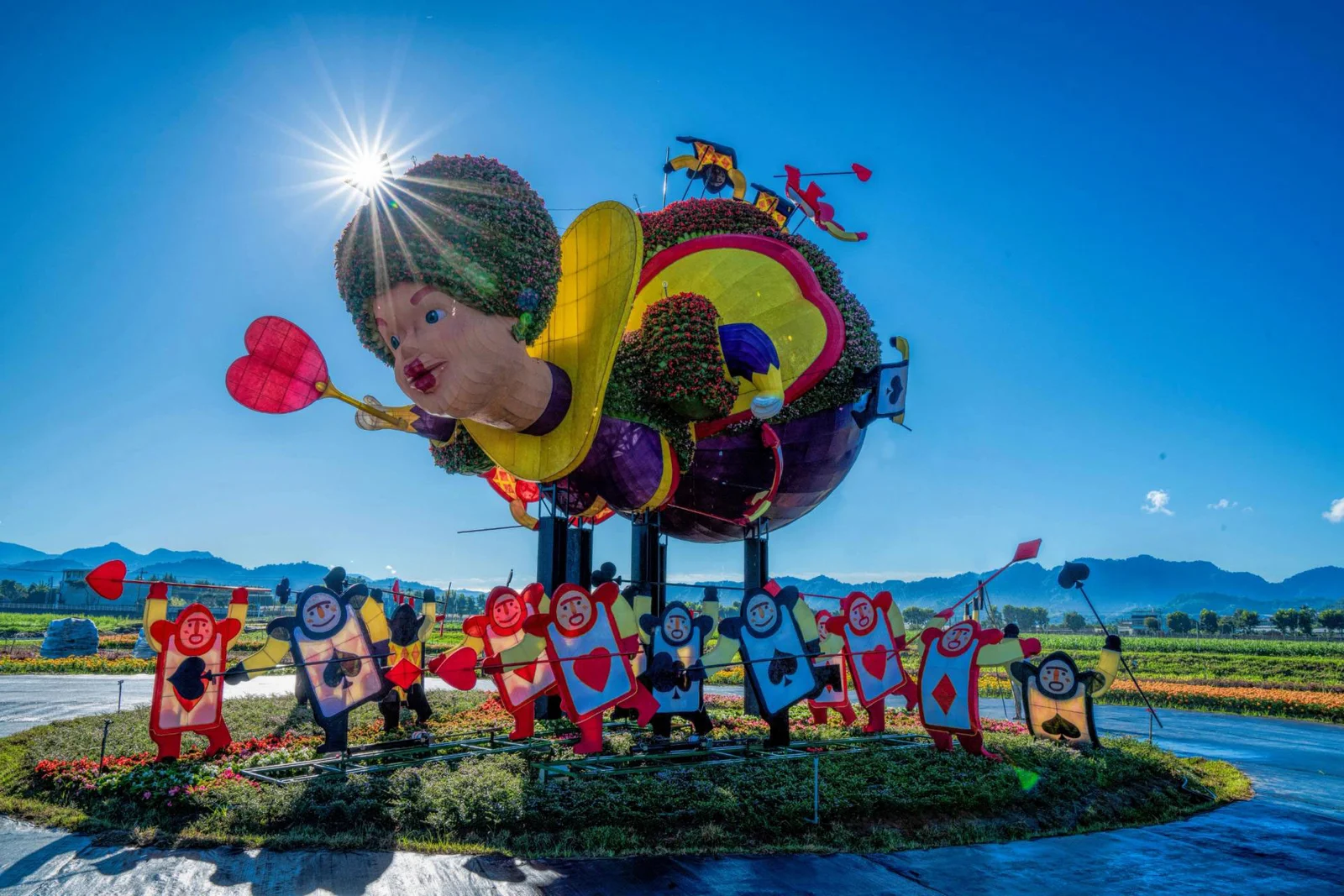 The festival's centerpiece, "The Brave Heart," stood tall at an impressive 10 meters, showcasing a majestic Queen of Hearts crafted entirely from flowers. This awe-inspiring creation, illuminated by lantern techniques and incorporating intricate floral arrangements, came alive with hourly shows featuring the Queen and her poker soldier entourage. The interplay of light, sound, and movement transported viewers into a captivating and slightly mischievous world.