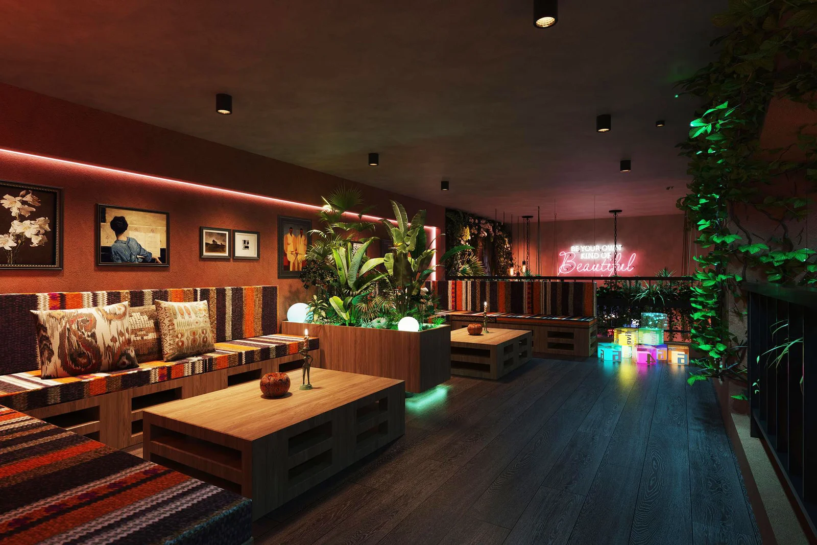 The lighting scheme plays a pivotal role in setting the mood. A captivating interplay of multi-level lighting creates distinct zones, each offering a unique visual experience. The warm glow, ranging from 10,000 to 20,000 Kelvin, evokes a romantic and inviting atmosphere, perfect for unwinding and indulging in captivating conversations.