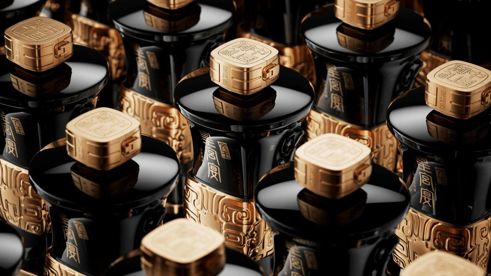 The Wenwang Imperial Banquet·Chinese Imperial Etiquette collection, inspired by the revered He Zun, is a stunning display of artistry and opulence. Its deep black glaze and intricate taotie motifs are elegantly offset by a jade cong cover, creating a striking visual balance. The vessel’s design, featuring golden taotie embellishments, a square body with a round mouth, and angular double-panel decorations, beautifully embodies the ancient philosophy that "Heaven is round and Earth is square." This alignment with traditional symbolism not only enhances the piece's aesthetic appeal but also speaks to the brand’s dedication to achieving perfection, infusing the vessel with a captivating sense of depth and dimensionality.