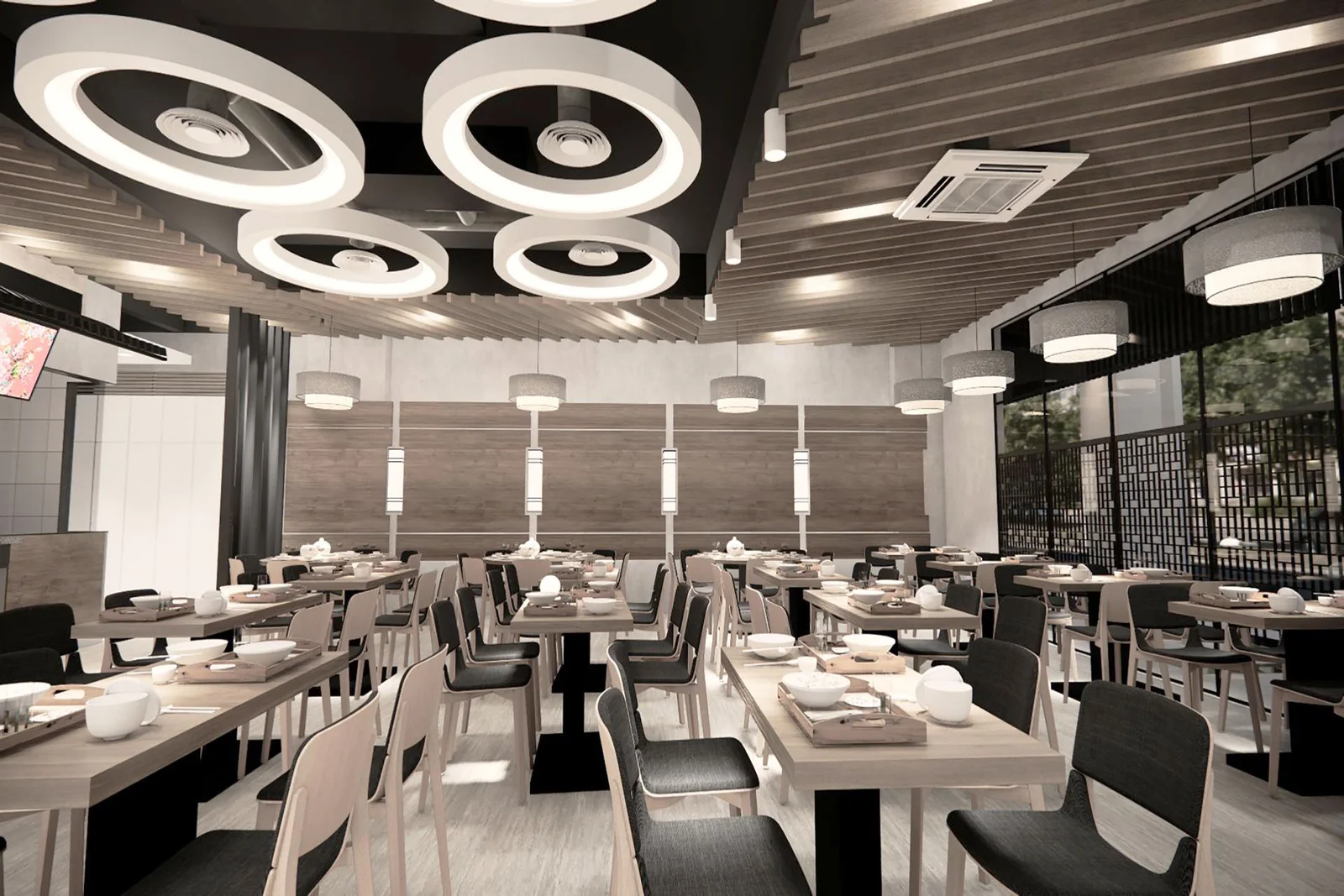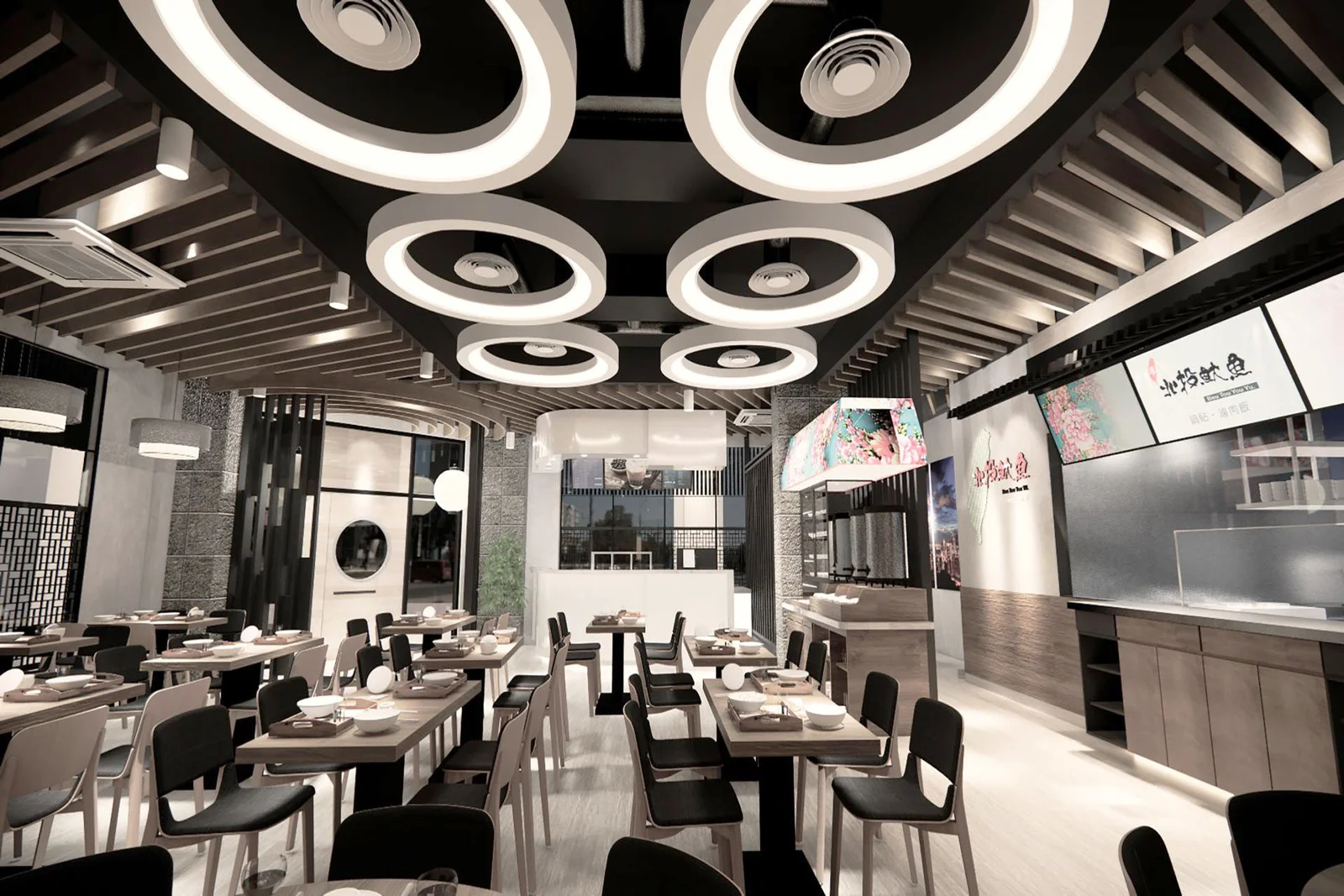 Entering Bei Tou You Yu feels like coming home to a warm hug. The use of faux wooden panels on the walls and ceilings evokes a sense of warmth and comfort, reminiscent of family gatherings around the dinner table. The arrangement of tables and chairs caters to both intimate meals for two and larger family gatherings, fostering a sense of community and togetherness.