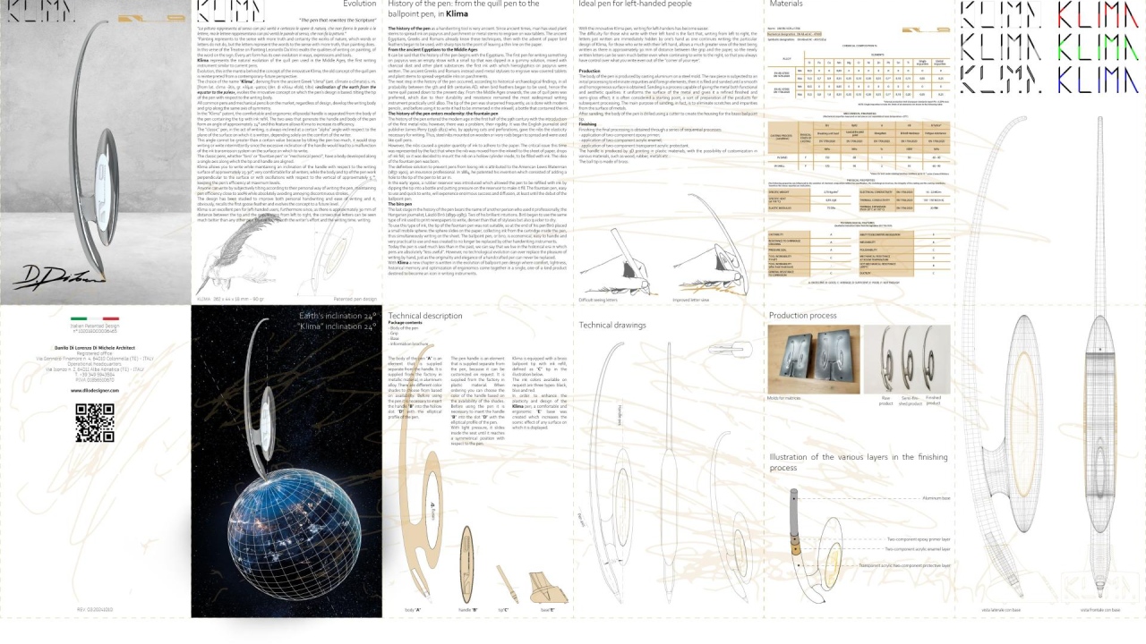 The challenges were many. The project passed three major patent applications. The unique curved shape of the writing instrument required a complex search to find a refill short enough to fit inside the pen. The desire to evoke the memory of the first pen made with goose feathers, but developed with a modern or futuristic language, went through many intermediate stages.
