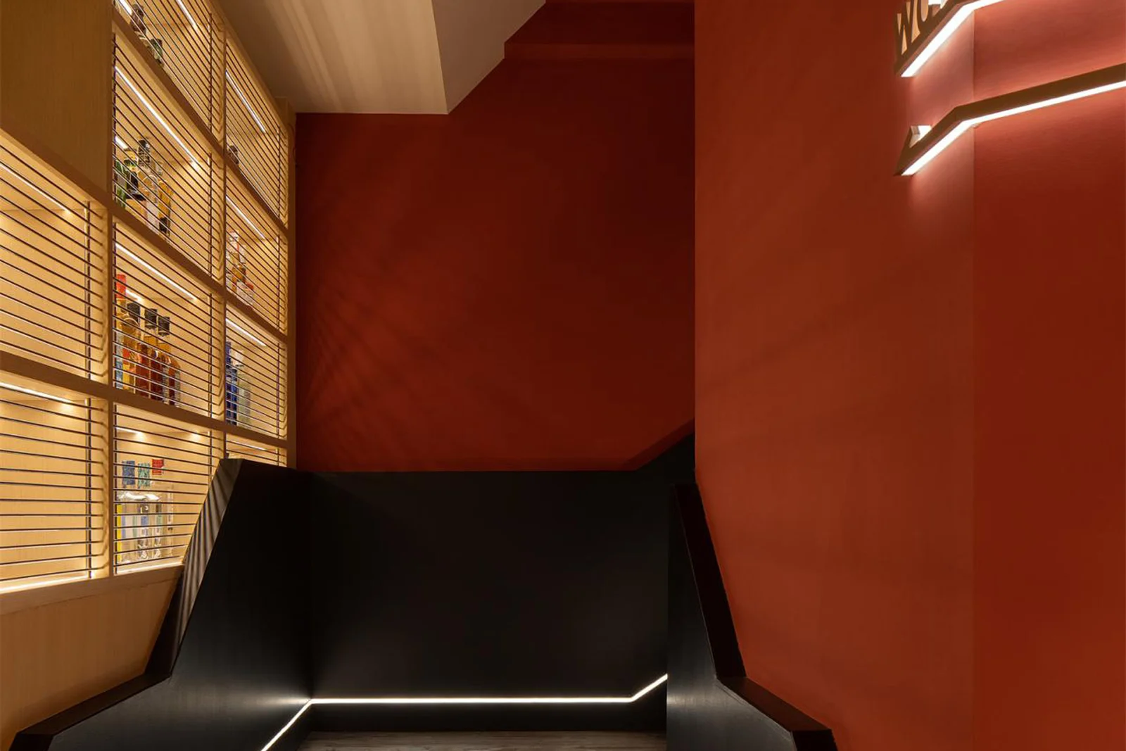 The design masterfully blends contrasting elements, defying expectations and igniting curiosity. The solid and traditional facade hints at a timeless elegance, while the modern interior pulsates with energy and experimentation. This juxtaposition is further emphasised by the functional division of the space. The first floor, bathed in natural light and adorned with comfortable seating, invites you to unwind and socialise. Ascend the stairs, and the second floor transforms into a buzzing hub perfect for enjoying expertly crafted cocktails in a more intimate setting.