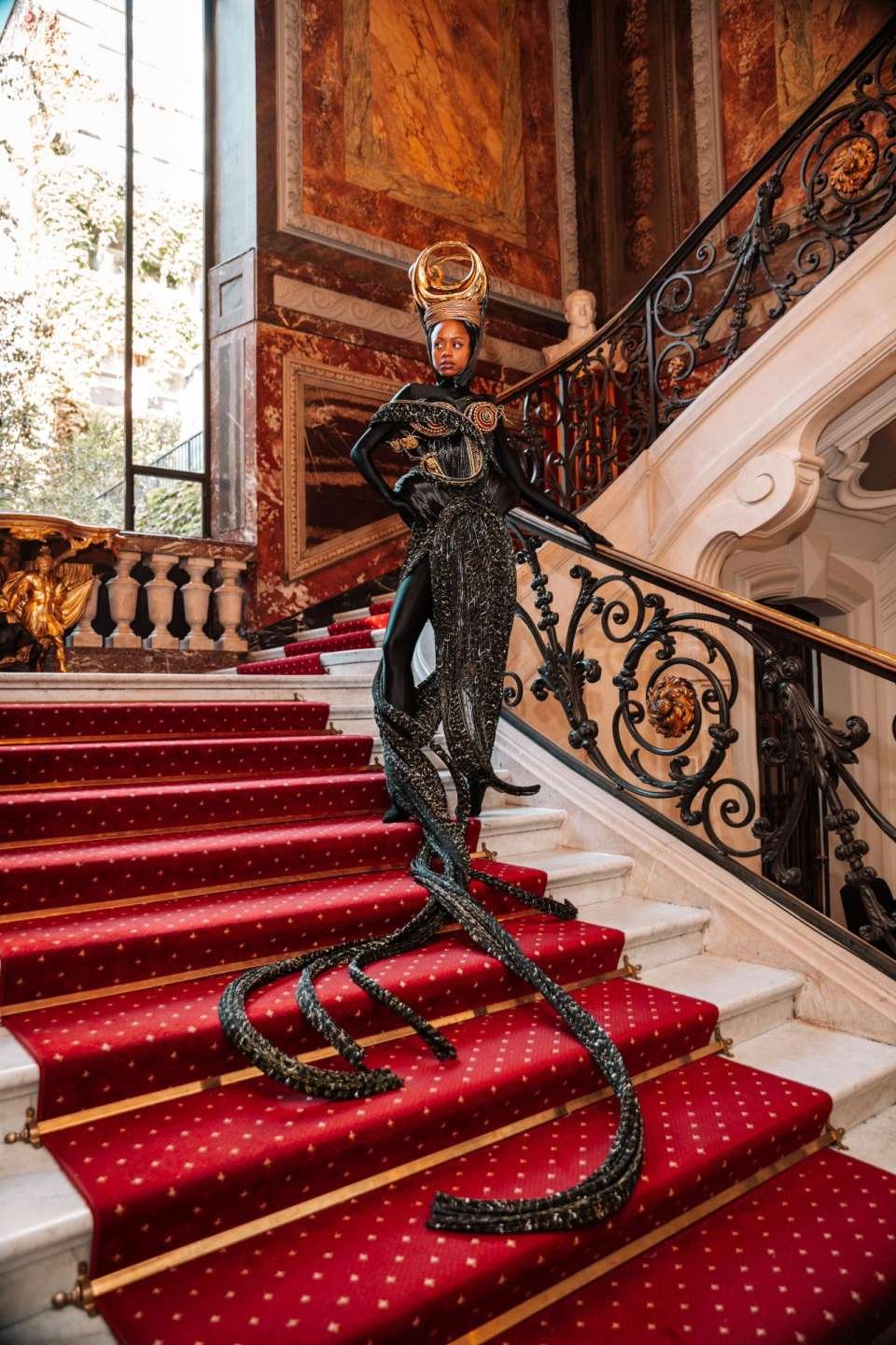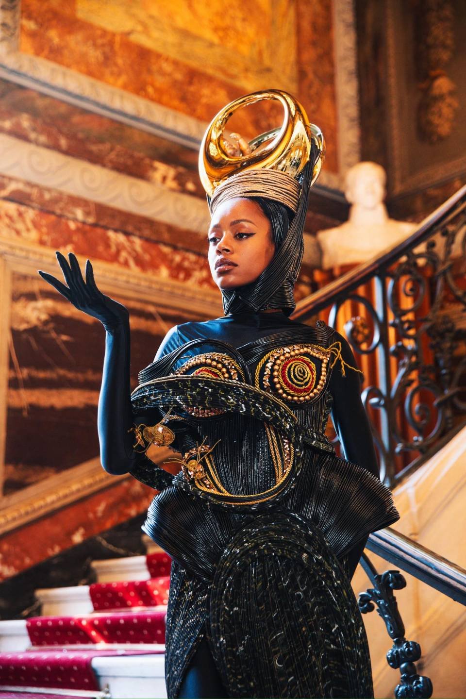 In a world where fashion often follows trends, Black Lioness commands attention with a voice entirely its own. A fashion that is more than a garment; as it stands as a vivid expression of mythology, craftsmanship, and purpose. Inspired by the powerful yet nurturing spirit of the goddess Kali, the piece channels a maternal force that protects, endures, and leads with unwavering strength. What happens when compassion wears armor?