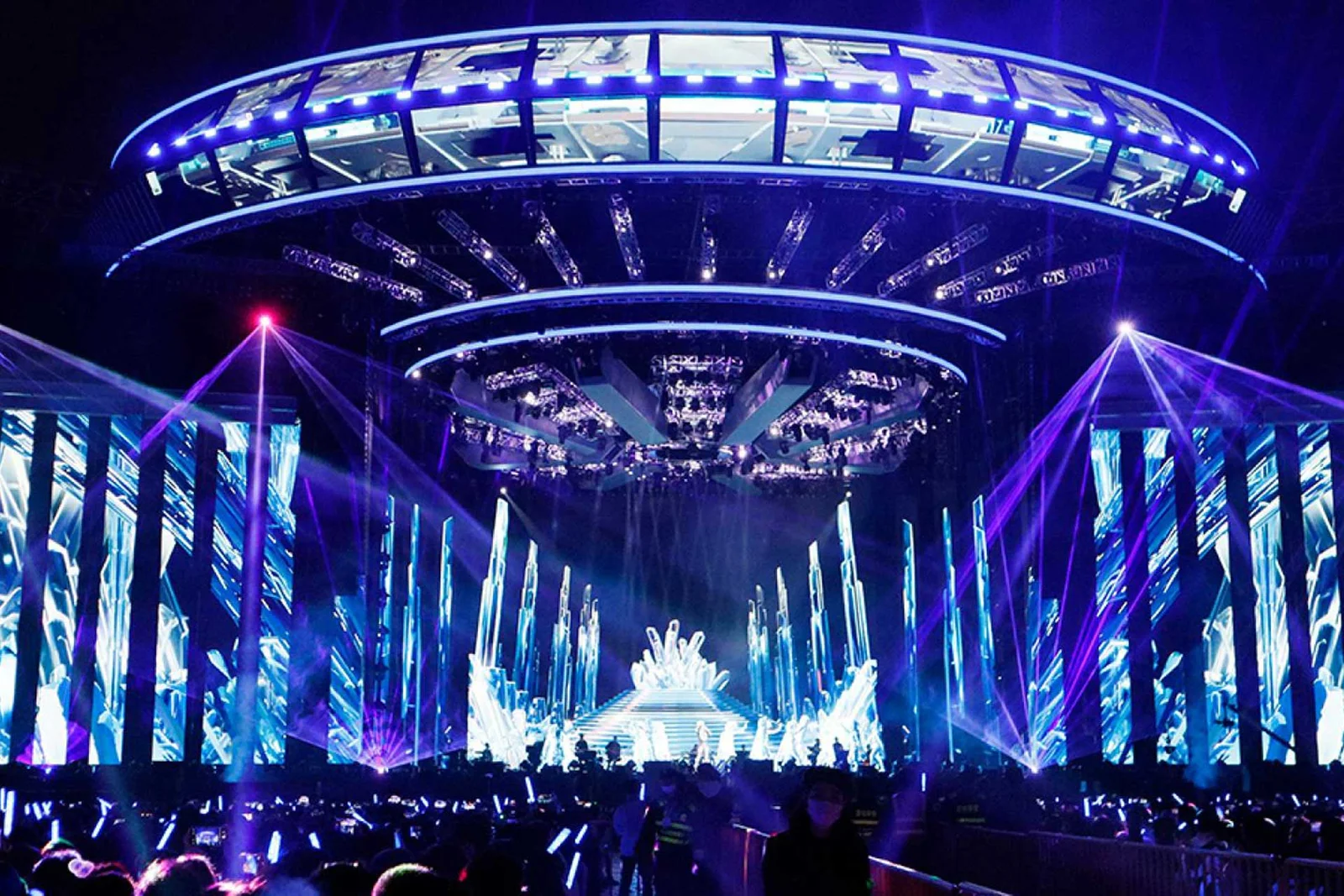 The concert's design ingeniously employs the stage, lighting, visual effects, and props to plunge the audience into the heart of the story. The staging is nothing short of a technical marvel, transforming the concert venue into a spaceship bound for interstellar adventures. This effect is achieved through a complex orchestration of lighting instruments strategically positioned above the stage. The design integrates a multi-tiered lighting layout within the structure of the spaceship stage, while vertical light arrays flanked by movable LED screens create a dynamic visual tapestry that shifts and evolves throughout the performance.