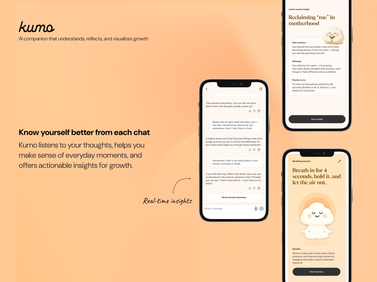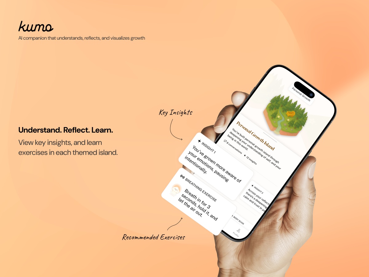 Those learnings led us to pivot Kumo from a pure “instant support” tool into a long-term growth companion: focusing on structured reflections, insight cards after each conversation, and a visual “growth map” of themes in their life. That shift only happened because we were willing to question our initial assumptions, run experiments, and let real feedback reshape the product.