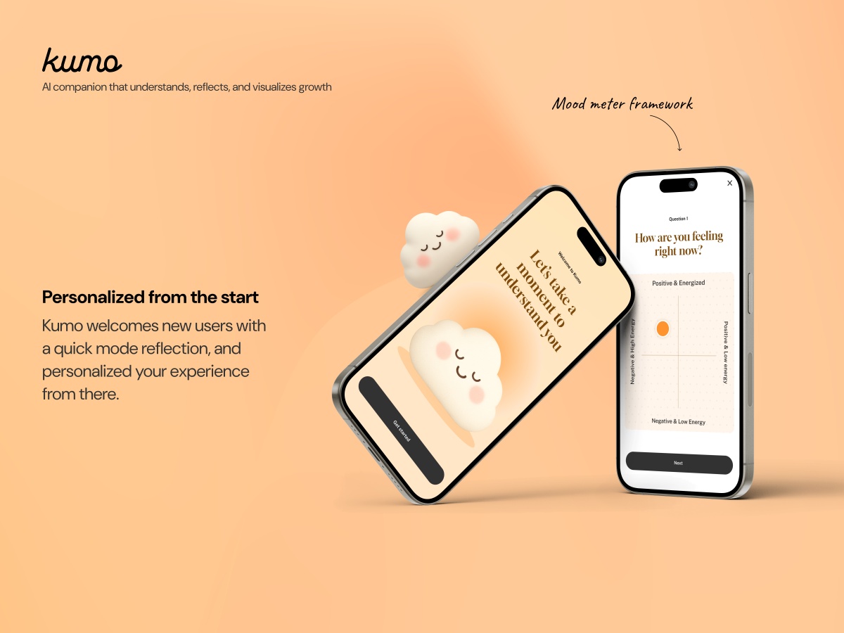 Over time, my focus has shifted from purely functional problem-solving to designing for emotional understanding and long-term impact. This shift led me to create Kumo, which explores how technology and design can help people better recognise, reflect on, and manage their emotions.