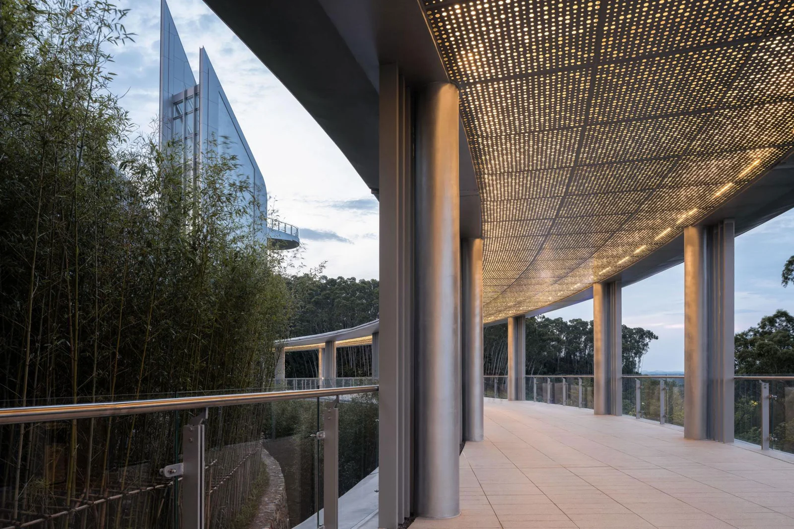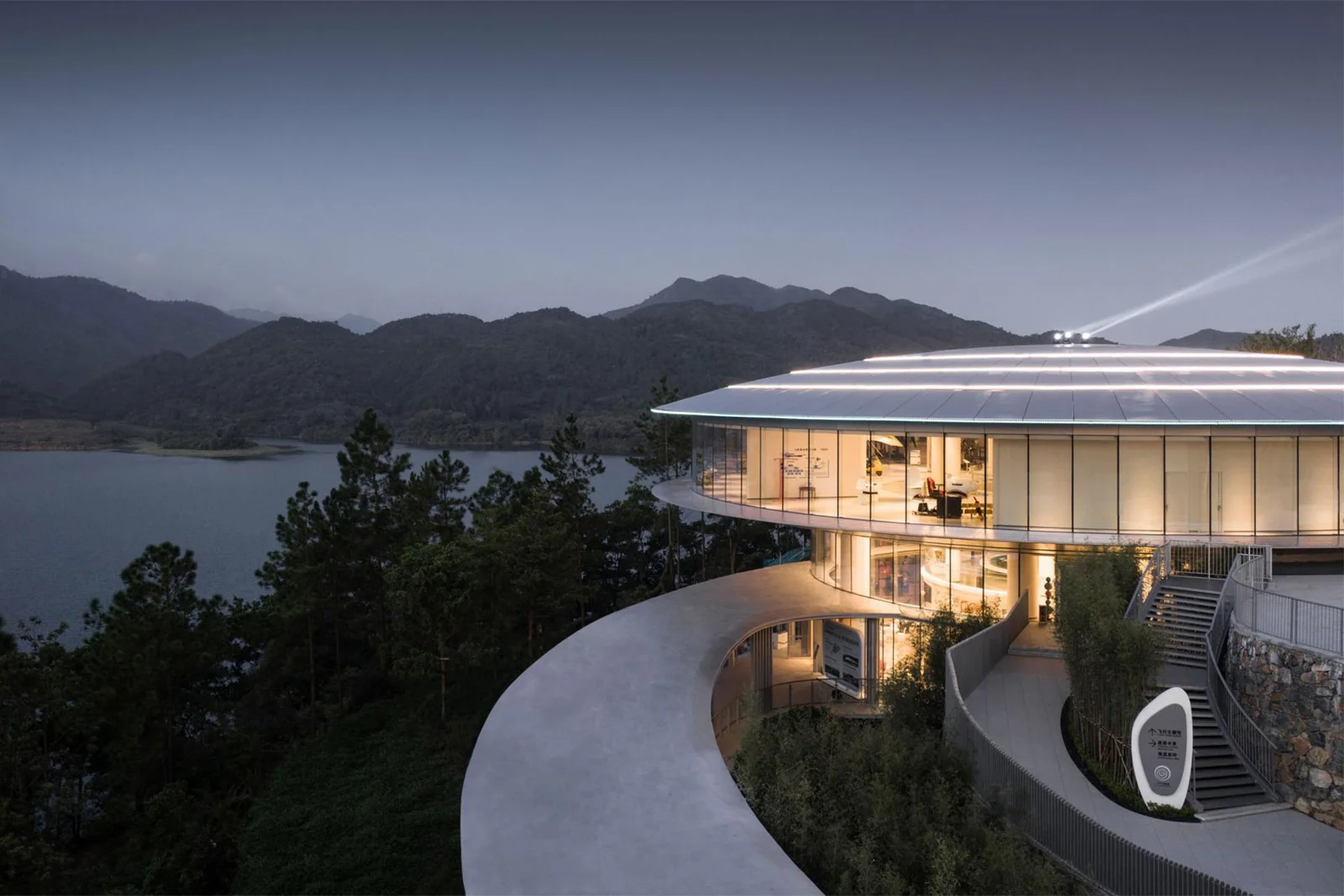 Nestled on the north bank of Qingnanjiao Reservoir in Quanlin Town, Enping City, Guangdong Province, the flight experience hall stands as a testament to the harmonious integration of modern design and natural beauty. Surrounded by green mountains and clear waters, the hall honors Feng Ru, China’s first aircraft designer, manufacturer, aviator, and father of Chinese aviation. This project aims to establish an aviation science popularization education base in Guangdong Province, while also serving as a cultural tourism and science and technology experience museum. It combines functions of exhibition, office and conference spaces, recreation and entertainment areas, and a visitor center.