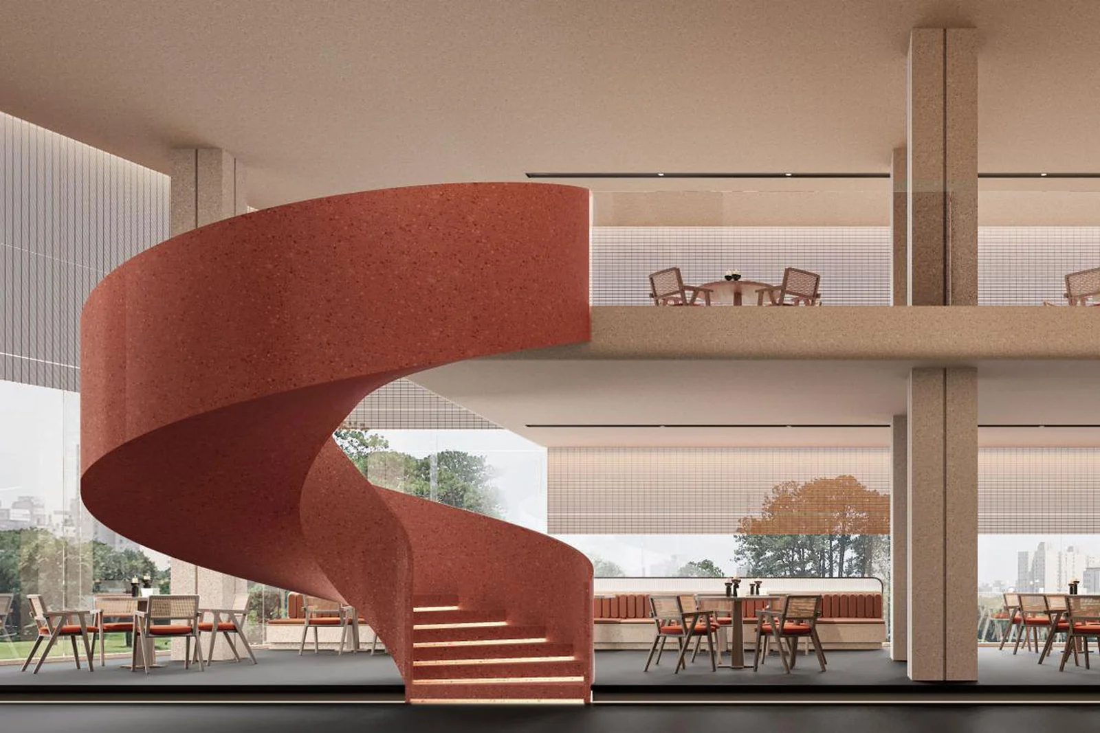 Ascend the spiral staircase, adorned in a burst of orange energy, and find yourself transported to the vibrant Water Bar and Lounge. Vibrant colours cascade throughout the space, crafting a stylish ambiance where sleek furnishings mingle with a contemporary setting. Guests are drawn into the artful experience of an afternoon coffee or a calming cup of Chinese tea.