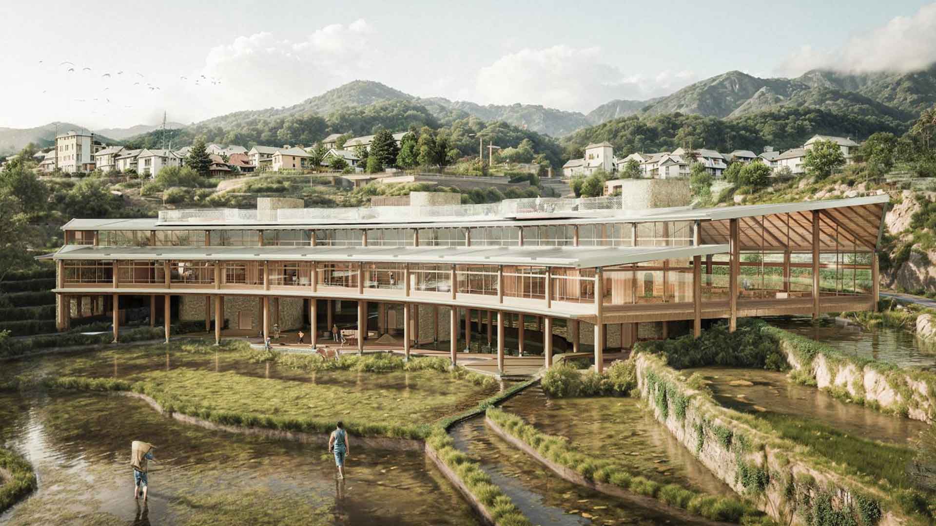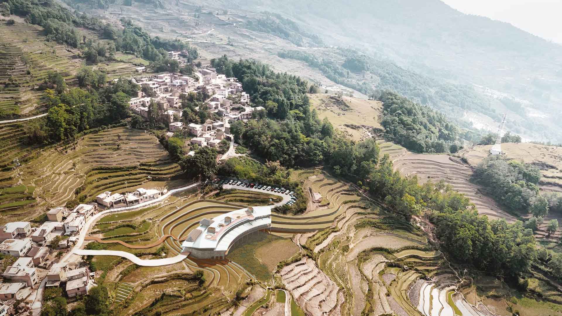 Located in Yunnan’s iconic terraced fields, the kindergarten is both an educational and community space and it drew inspiration from the surrounding stepped terrain, YG Studio envisioned a curved structure that gently integrates with its landscape. The building’s outdoor platforms allow children to engage directly with their environment, connecting lessons in the classroom with the ecology and agricultural traditions of the region. This connection enriches their learning and also roots the school in the cultural and natural fabric of the community.