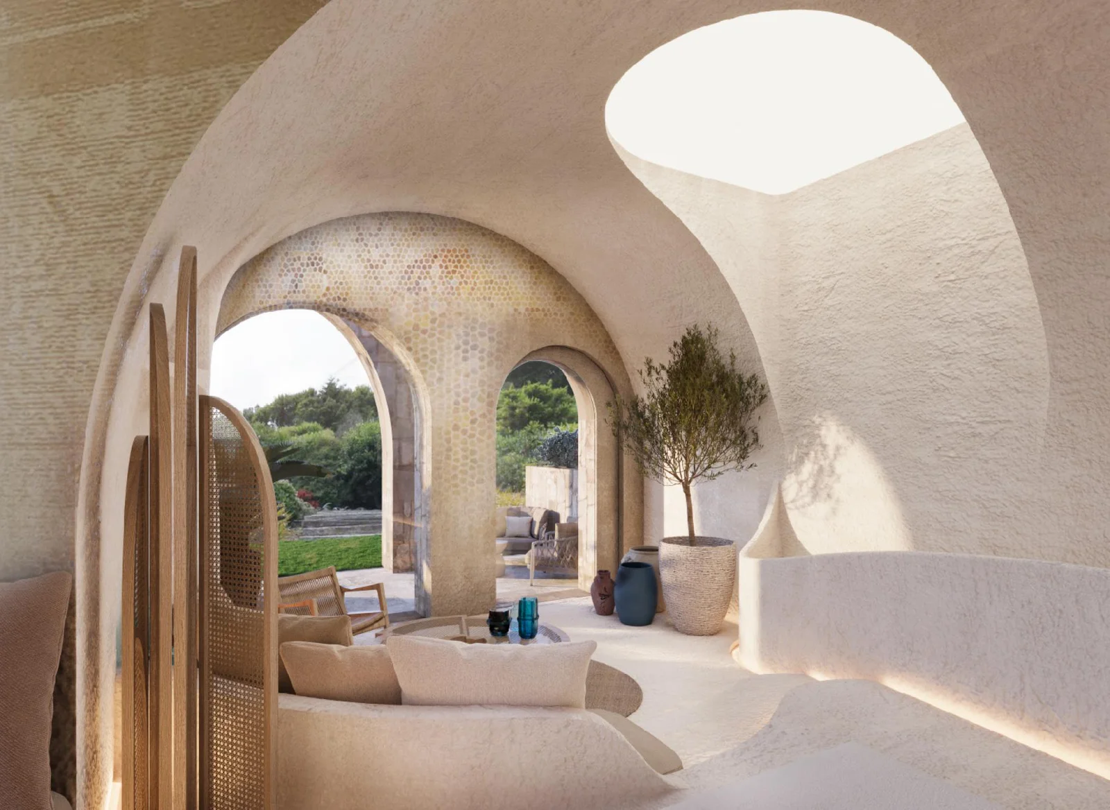 While the Indigo Karlik Spa Hotel doesn't exactly integrate or build into the rock formations, the design heavily draws inspiration from Cappadocia's architectural theme. Local stones and traditional forms are woven into the architecture featuring the area's history while introducing a modern aesthetic to its designs. The result turned out to be a space that feels rooted in the natural landscape with a perfectly integrated design that suits today's travelers.