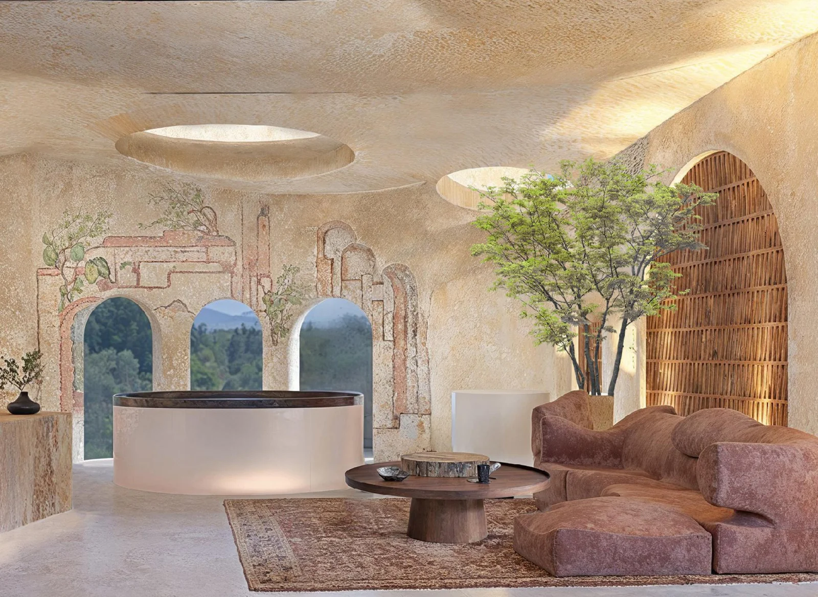 Amid this remarkable setting, Global Architectural Development (GAD) has introduced the Indigo Karlik Spa Hotel, a project that thoughtfully merges modern luxury with Cappadocia’s unique heritage. Spanning 3,500 square meters, the hotel includes 21 rooms, a restaurant, a lounge, an event hall, administrative facilities, and a sprawling 900-square-meter spa. The design is carefully crafted to complement the area’s dramatic scenery while offering guests a refined and comfortable experience.