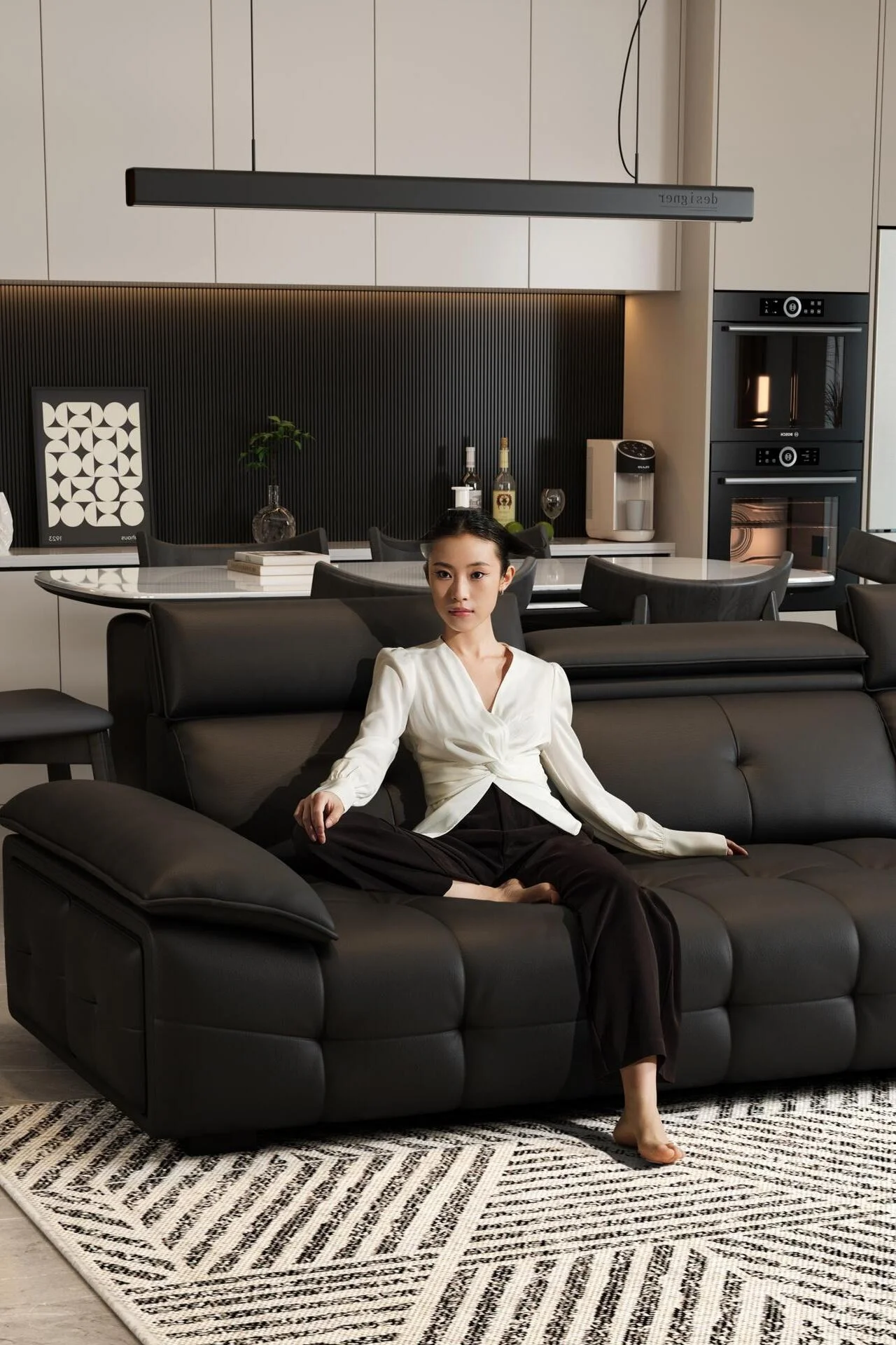 Crafted for unparalleled relaxation, the sofa features a plush combination of down feathers and high-resilience foam. This combination ensures that the sofa provides a perfect balance of softness and support, a key aspect that makes a sofa hit or miss. Another key highlight would be its innovative rotating headrest, designed to cater to users of various heights which does not sacrifice any comfort while offering adaptability and adjustability for individual needs.