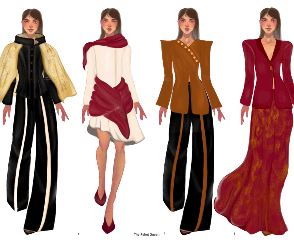 Kam Dylan is an emerging designer whose practice is rooted in narrative-driven fashion. Studying at Istituto Marangoni, she developed a portfolio inspired by Maharani Jindan Kaur, bringing attention to her overlooked role in history. Her designs balance expressive creativity with a strong intention to convey culturally resonant messages.