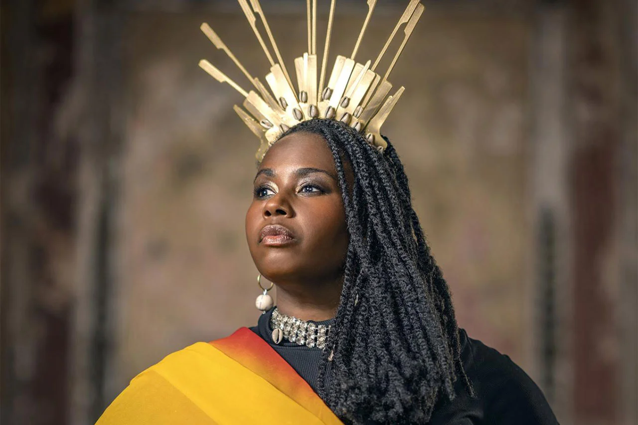 This fusion reflects not only the multicultural identity of Black Britons but also the idea that royalty can be redefined in a way that feels inclusive and culturally resonant. By integrating African and Afro-futuristic elements, such as bold textiles, beadwork, and intricate hairstyles, Bright’s work nods to a lineage of African queens and warriors who ruled with grace and strength long before European monarchies came into being.