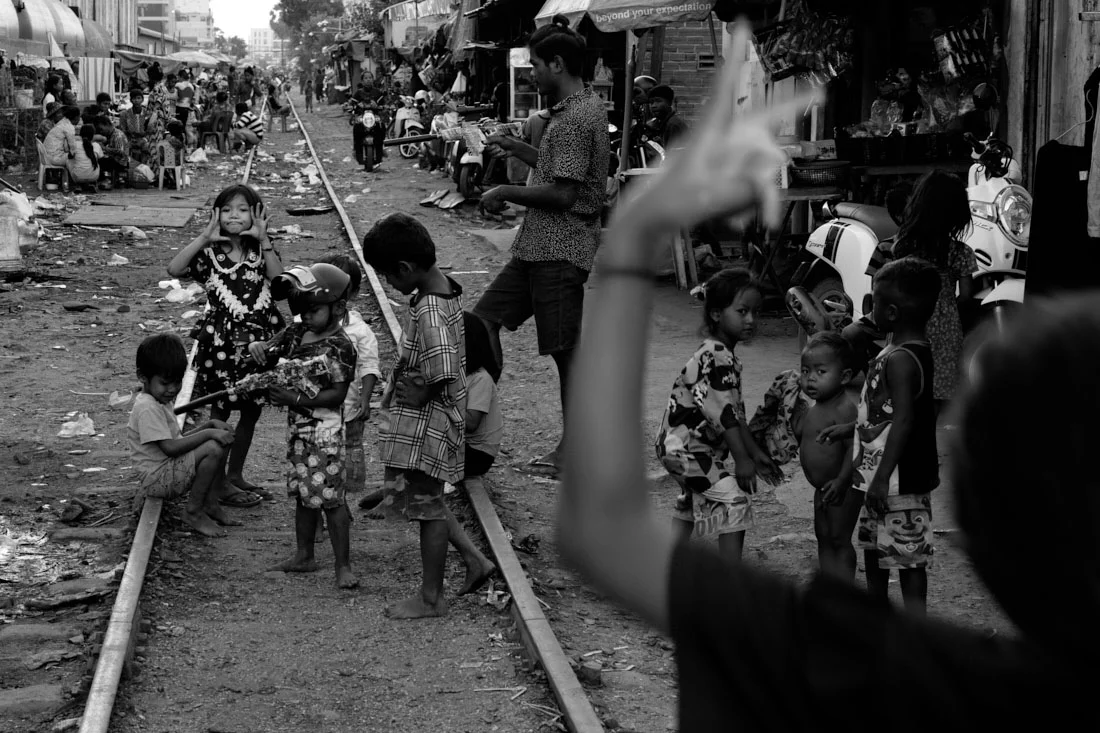 Gruber's masterpiece shot in black and white is a deliberate action, as removing color from his images assists in eliminating distractions and allows the viewer to focus on the core elements of the composition, in this case; the living conditions of the society in Phnom Penh’s Railway Districts in Cambodia. Additionally, the colors black and white provide a viewing opportunity to see the world from a different perspective, almost with a child’s eye, analyzing everything and learning from the most simple things.