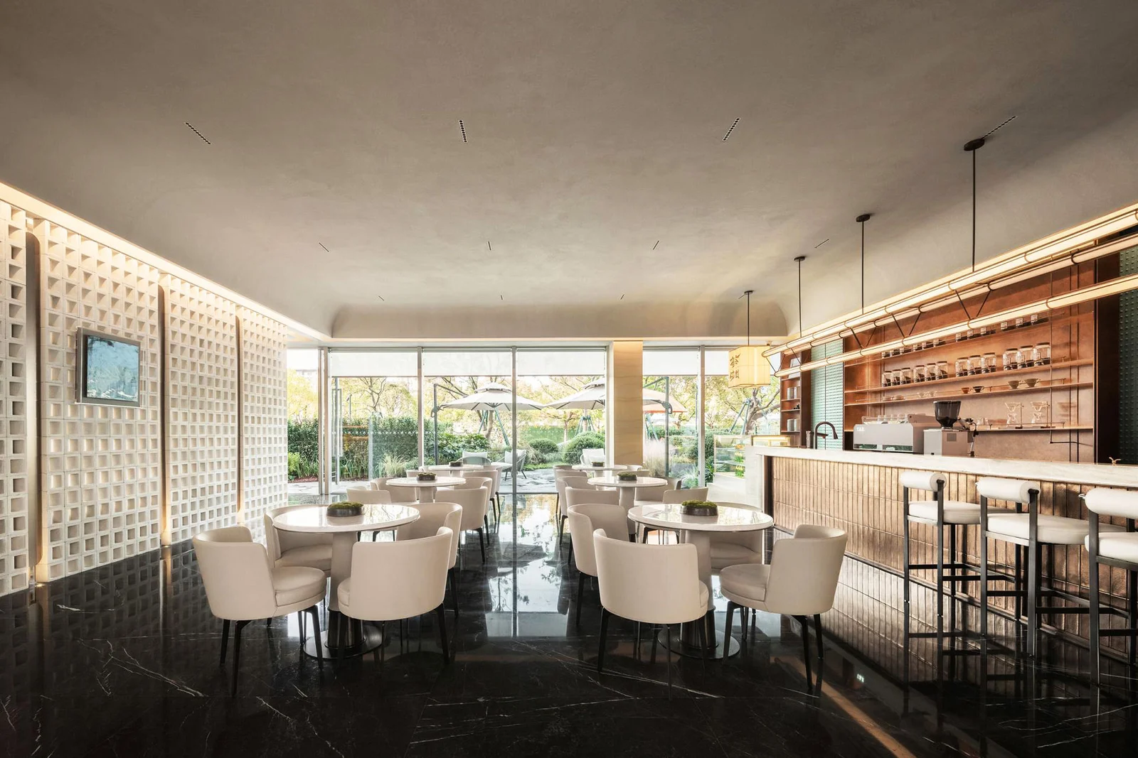 The expansive garden view serves as a canvas for the design team to articulate the profound relationship between people and their surroundings. By inviting light and fresh air into the space and incorporating elements such as bamboo and tea, the scenery evolves, awakening a deep sense of empathy and resonance between humans and the built environment. As you wander the garden's curving paths, its peaceful atmosphere gradually washes over you, offering a sense of quiet renewal.