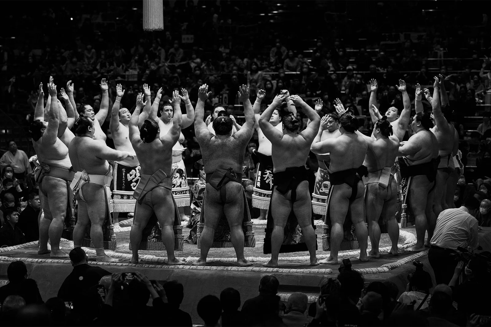 The photographs, titled Tenacity and Tradition by Eric Kanigan show how Sumo is not just a physical contest; it is an embodiment of Japanese spirituality and ceremony. The traditional rituals performed in every match are as integral to the sport as the competition. Before each battle, wrestlers engage in symbolic gestures that harken back to sumo’s ancient origins. They clap their hands to call the gods' attention, stomp their legs to drive away evil spirits and throw salt into the ring to purify it. These actions are not merely ceremonial—they link the sport to Japan’s spiritual past, making each match a living testament to the resilience of tradition.