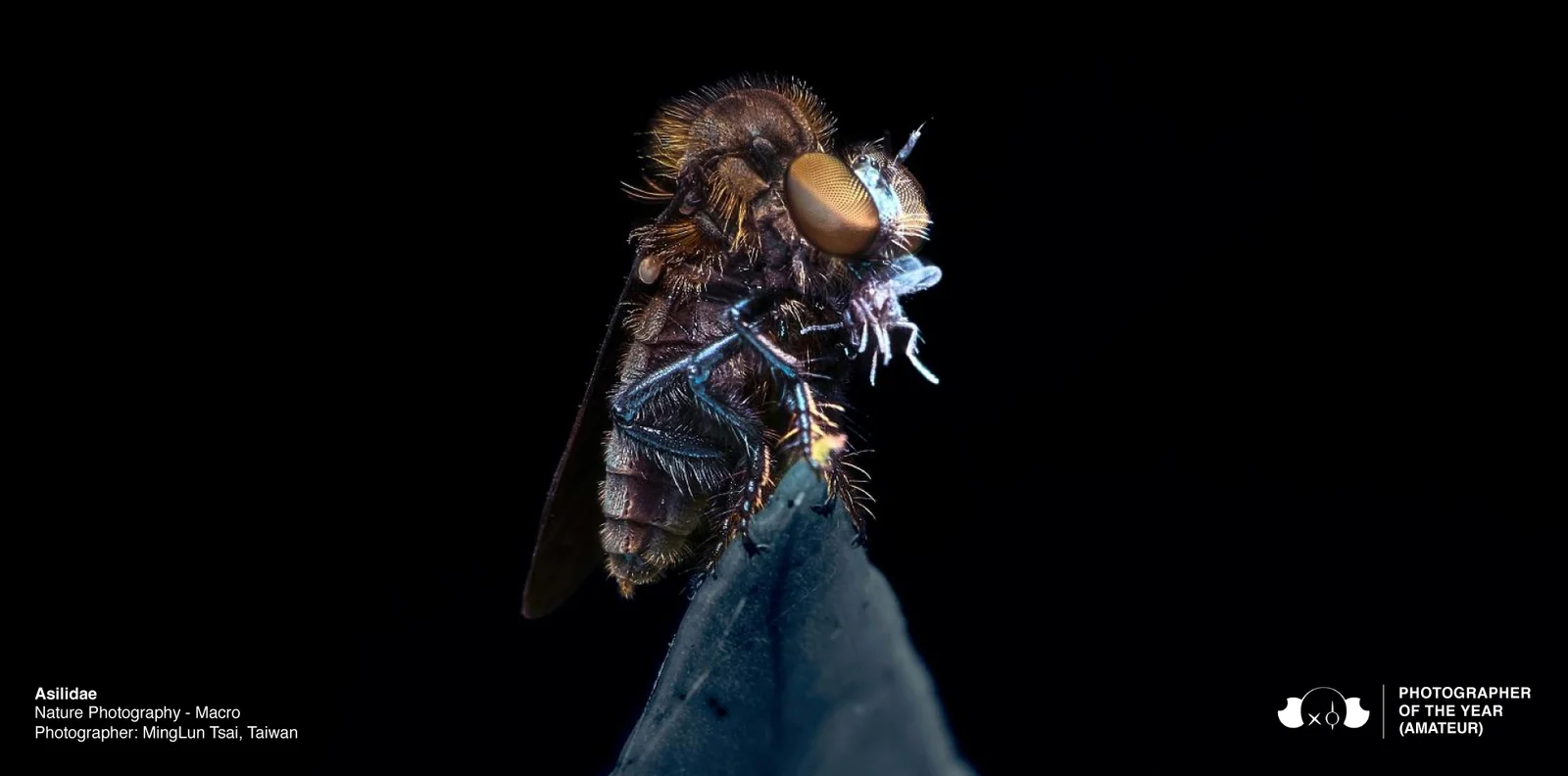 Concluding the competition leads to the unveiling of the Photographers of the Year, recognising individuals who have masterfully blended aesthetics, narrative, and significance in their work. Lee Nordbye has been named as the Professional Photographer of the Year for their captivating image, “Moon Summit” awarding a cash prize of $3,000. Additionally, MingLun Tsai has been awarded the title of Amateur Photographer of the Year for their compelling entry, “Asilidae” winning a $2,000 cash prize.