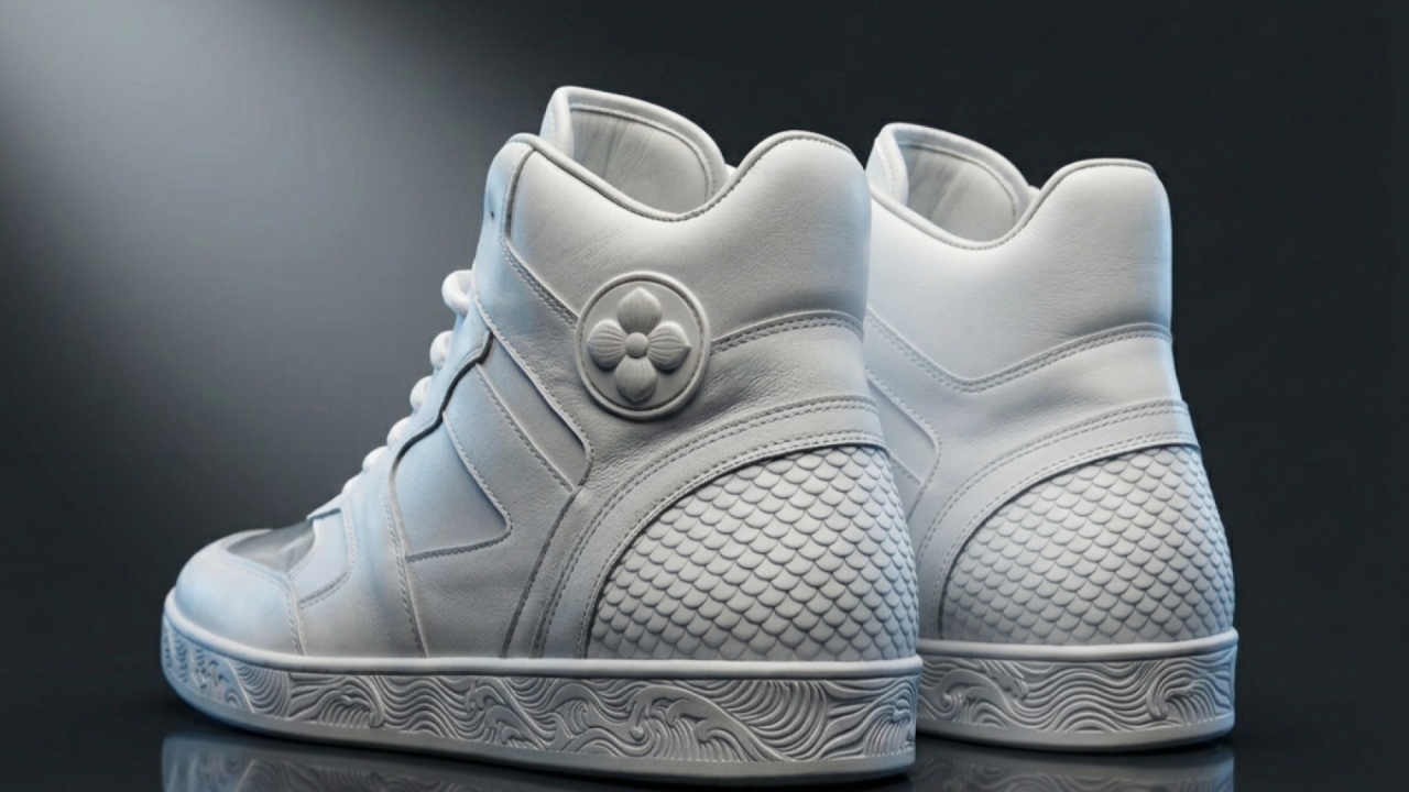 The piece recognised by the French Fashion Awards explores this philosophy through an architectural approach. It features a wave-inspired sole derived from Japanese tsunami imagery, paired with bold proportions and integrated storytelling elements that extend beyond surface-level graphics. Every detail is intentional—the structure itself carries the identity of the design, rather than relying heavily on logos or conventional branding.