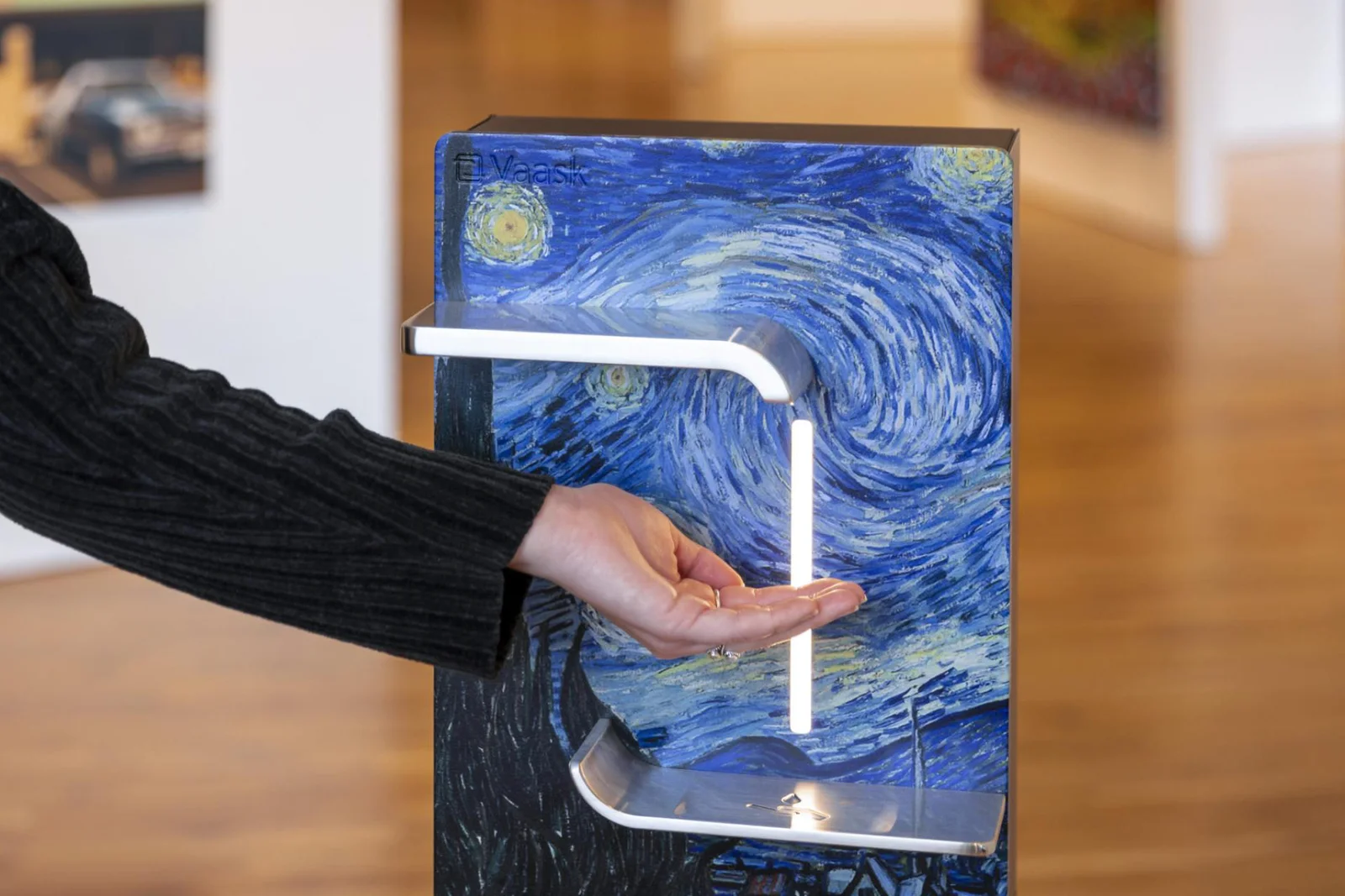 Vaask incorporates advanced technology for a reliable user experience. Its high-end stepper motor and peristaltic pump ensure accurate sanitiser dispensing every time. The innovative PalmPilot sensor eliminates drips and mess by precisely detecting hands of all sizes and colours, unlike traditional infrared sensors.